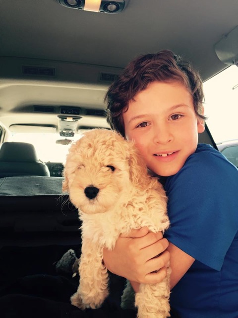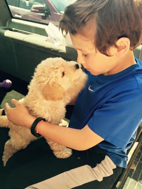 with KC, his (their?) new goldendoodle!