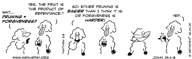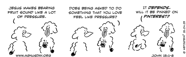 Jesus said to his disciples, ”I am the true vine, and my Father is the vinegrower. He removes every branch in me that bears no fruit. Every branch that bears fruit he prunes to make it bear more fruit. You have already been cleansed by the word that I have spoken to you. Abide in me as I abide in you. Just as the branch cannot bear fruit by itself unless it abides in the vine, neither can you unless you abide in me. I am the vine, you are the branches. Those who abide in me and I in them bear much fruit, because apart from me you can do nothing. Whoever does not abide in me is thrown away like a branch and withers; such branches are gathered, thrown into the fire, and burned. If you abide in me, and my words abide in you, ask for whatever you wish, and it will be done for you. My Father is glorified by this, that you bear much fruit and become my disciples.”