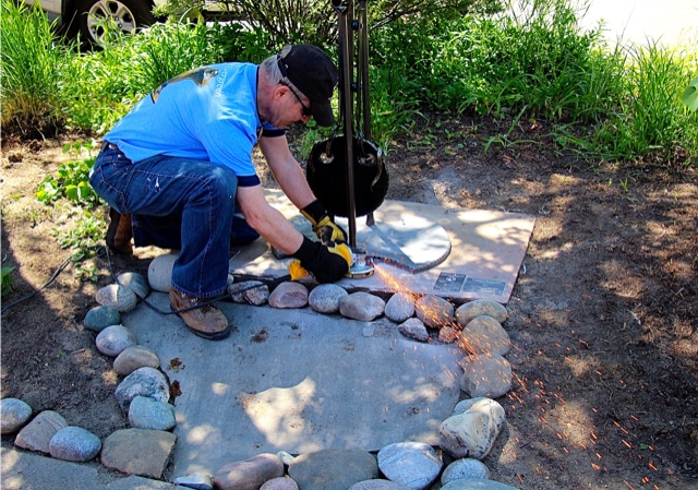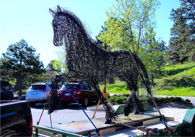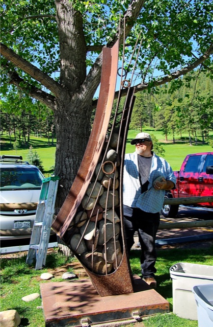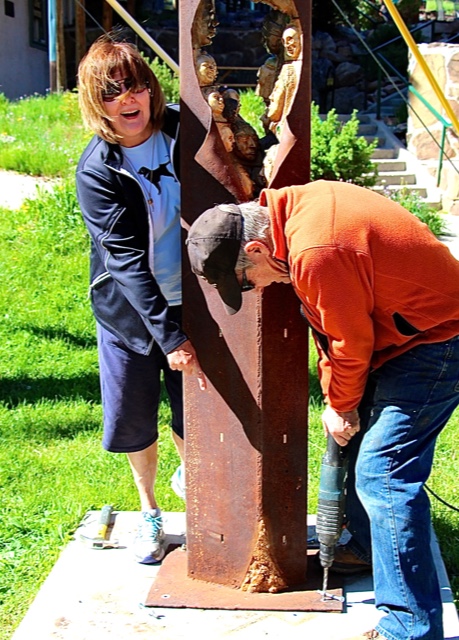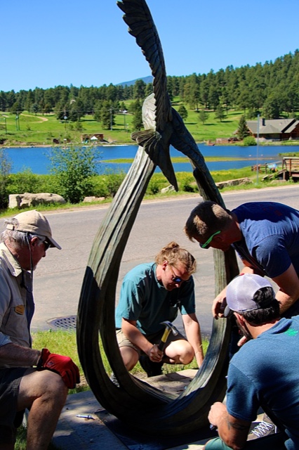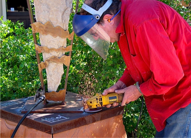 Johnston welds Sandstorm, by Justin Deister, in place.