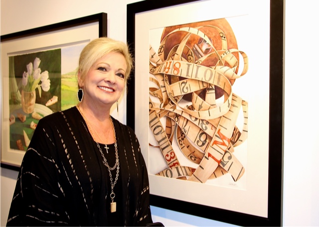 Bridge members in front of the Best of Show painting by Jan Ledbetter.