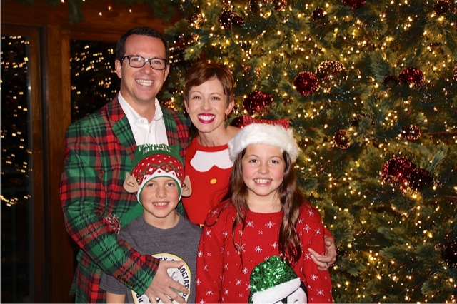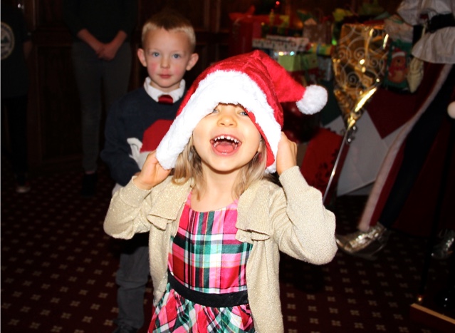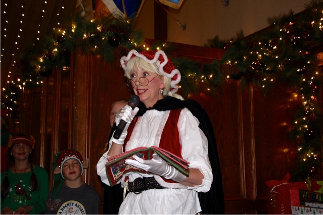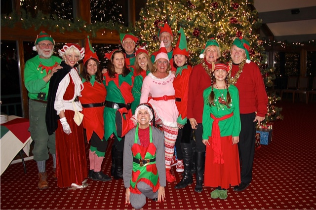 of Mrs. Santa’s elves gathered around the Christmas tree.