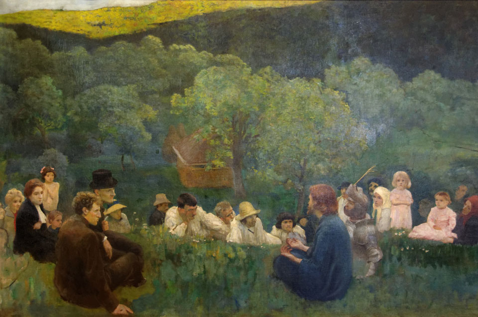 Károly Ferenczy is regarded as the father of Hungarian Impressionism. In his 'Sermon on the Mountain', he portrays Christ sitting among his people as their equal, unlike other treatments of the 'Beatitudes' theme. Currently on exhibit at the Magyar Nemzeti Galéria, Budapest Hungary.