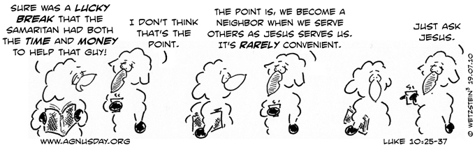 my neighbor?" Jesus replied, "A man was going down from Jerusalem to