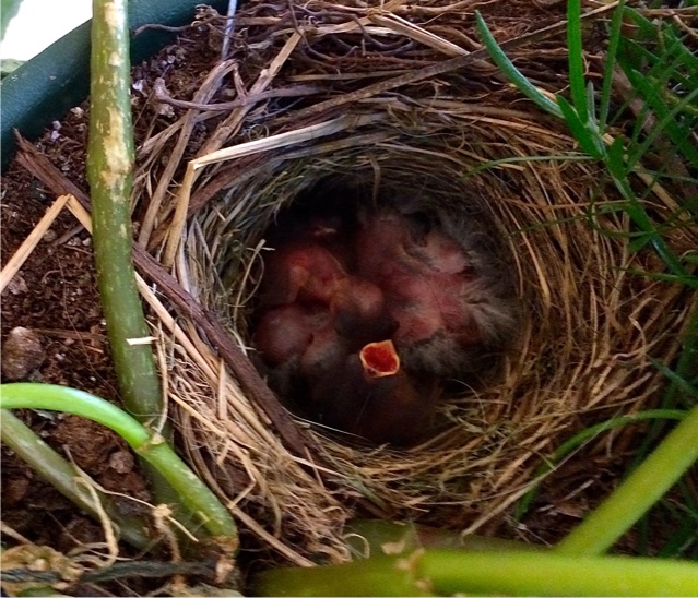 birdies in my hanging basket by the front door have hatched!