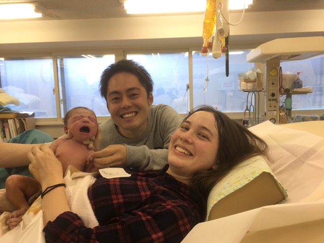 Sakamoto Sakakibara and Yushi Sakakibara with their newly born son.