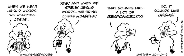 whoever welcomes me welcomes the one who sent me. Whoever welcomes a prophet in