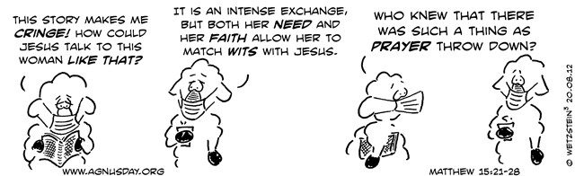 the crumbs that fall from their masters' table." Then Jesus answered her,