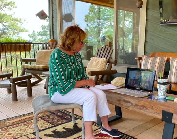 Farnsworth and Nancy Quayle listening to one of our Zoom attendees.