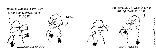 whip of cords, he drove all of them out of the temple, both the sheep and the
