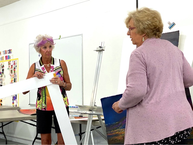 our Painted Toe Art Society Pam Hake, on the right, critiqued Terrey Harrod’s
