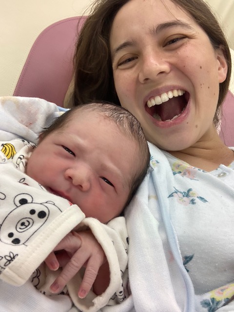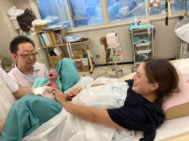 Sakamoto Sakakibara got to cut the umbilical cord of her newborn son.