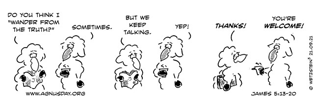 anyone among you wanders from the truth and is brought back by another, 20you should know that whoever brings back a sinner from wandering