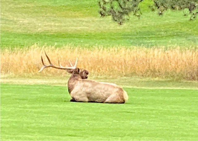 big bull has only one antler and is having trouble gathering a harem.