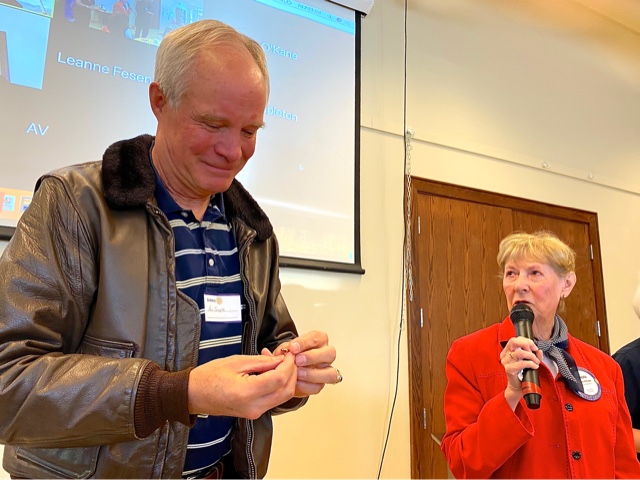 Kellogg spoke of her husband’s naval history and then presented his Navy