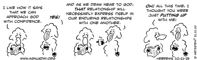 confession of our hope without wavering, for he who has promised is faithful. 24And let us consider how to provoke one another to love and good